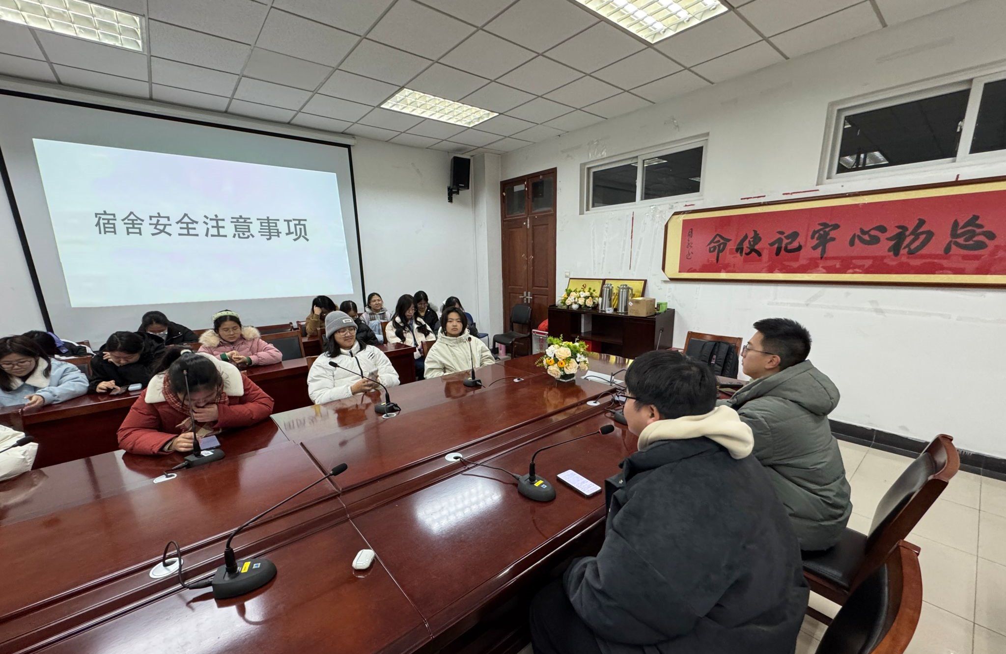 随后,班级生活委员对宿舍安全注意事项进行了逐条解读,并结合秋冬季实际情况提出具体建议,包括定期检查电源、保持室内通风、不存放易燃物品、加强夜间出入管理等。同学们也积极参与互动,分享自身在宿舍生活中遇到的安全问题和经验。