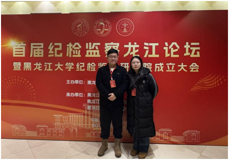 12月21日,由黑龙江大学主办,黑龙江大学法学院、黑龙江大学纪检监察研究院以及黑龙江纪检监察协会共同承办的“首届纪检监察龙江论坛暨黑龙江大学纪检监察研究院成立大会”在哈尔滨举行。来自中国政法大学、中国人民大学、辽宁大学、吉林大学、中央财经大学、复旦大学等众多知名高校的单位代表,共计100余人齐聚一堂。我院2023级硕士研究生朱亚欧、2024级硕士研究生许诺参加大会,与众多专家学者展开交流与学习。