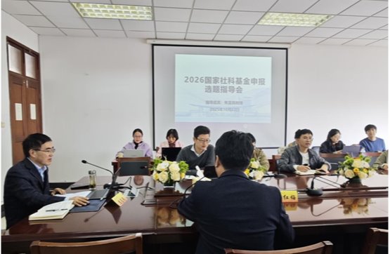 为做好我院2026年度国家社科基金项目申报工作,提升青年教师科研项目申报选题水平,10月17日下午3:00,我院在德正楼404树平会议室开展2026年度国家社科基金申报选题指导会,邀请我院法学一级学科带头人焦富民教授作经验分享和现场指导。本次指导会由我院院长胡宜奎教授主持,学院大部分青年教师参加。